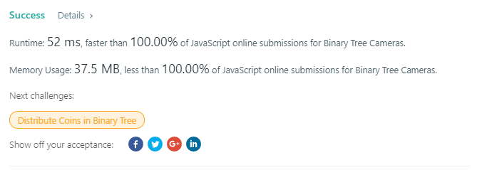 LeetCode provides some great solution analytics – at the time of solving the problem, my solution execution time was 79% faster than other JavaScript solutions. My assumption is that that these solutions may have taken more agricultural approaches.